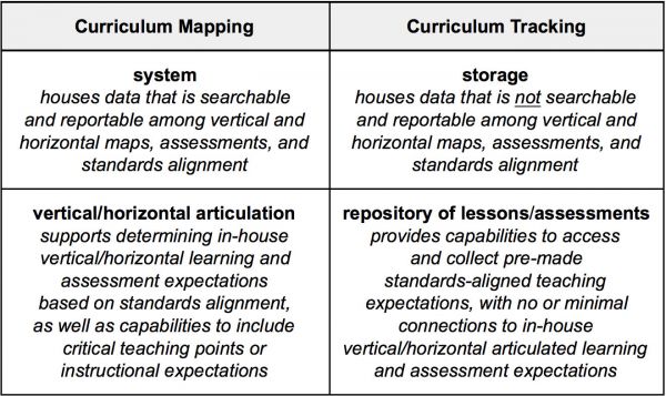 It is important that your leadership team can differentiate between curriculum mapping and curriculum tracking when considering map-creation capabilities: it is important that your leadership team can differentiate between curriculum mapping and curriculum tracking when considering map-creation capabilities: